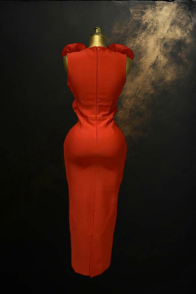 Flower Sleeveless Red Dress